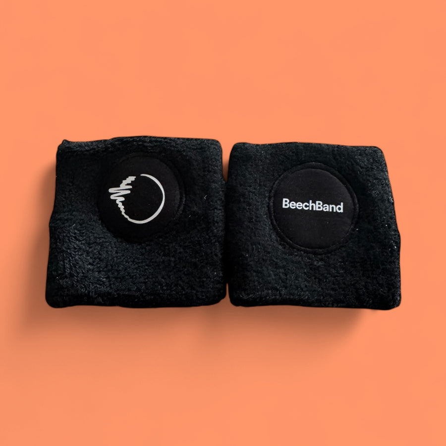 Experience comfort with our set of two sweatbands. They are soft and absorbent black cotton fabric with one featuring the BeechBand logo and other with the BeechBand name.