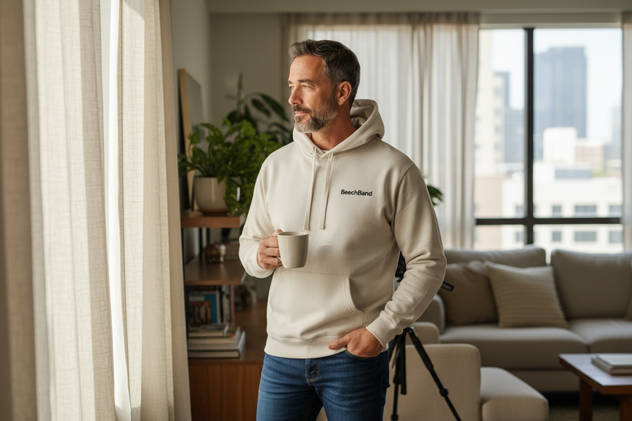 Offered in the signature BeechBand shades of Black or Sand, it effortlessly complements any outfit. Whether you're out for a casual stroll or unwinding at home, this hoodie is designed to keep you cozy and stylish.